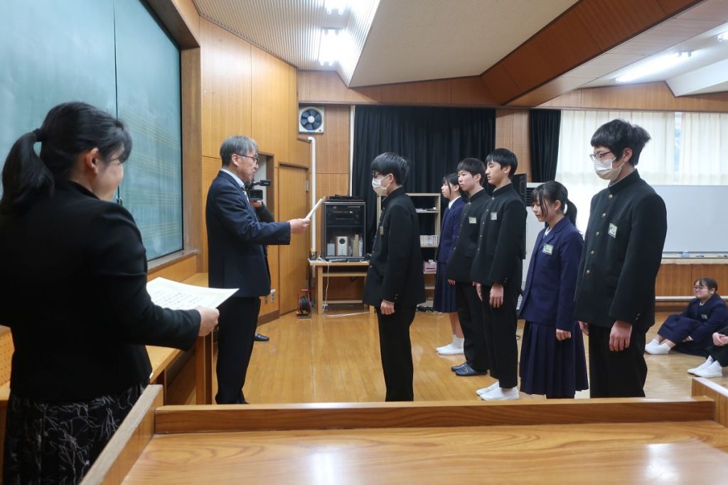 3学期がスタートしました。久しぶりにみんなと顔を合わせ、みんなで校歌を歌いました。生徒がいてこその学校だと感じます。始業式の後、地域で行われた上毛カルタ大会の表彰も行いました。郡大会での活躍により、県大会に出場する生徒もいます。3学期の活躍を期待させる一日となりました。