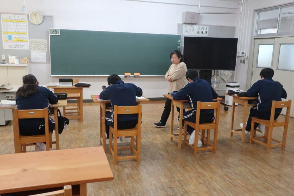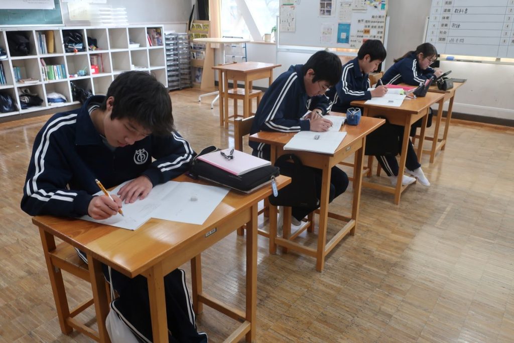 3年生の数学は、明日の実力テスト最終回に向けてテスト勉強を各自が進めていました。黙々と取り組む姿から、受験生の覚悟を感じました。
