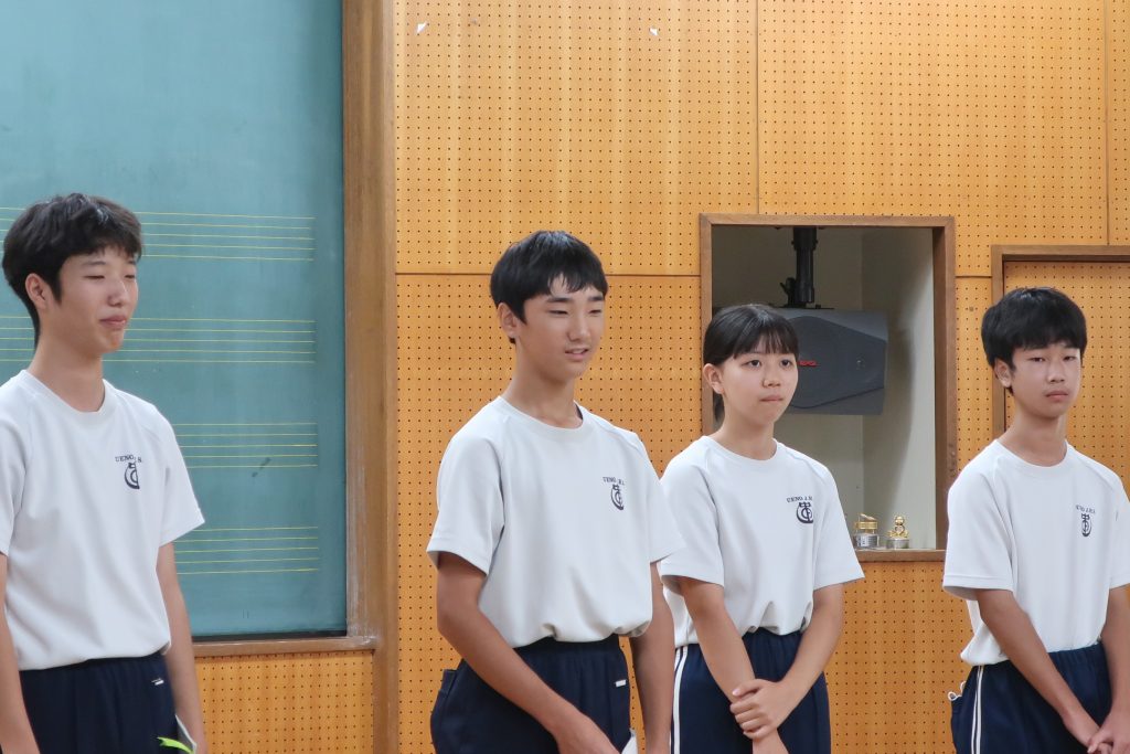 4校時には、新生徒会本部役員の任命式が行われ、その後、旧生徒会本部役員と新生徒会本部役員の交代式が執り行われました。旧役員の皆さんには、感謝の気持ちを込めた手紙が贈られました。これまで学校のために尽力してくれた旧役員の皆さん、本当にお疲れさまでした。また、新役員皆さんには、これから様々なところで活躍してくれることを期待しています。 アクセス数: 97
