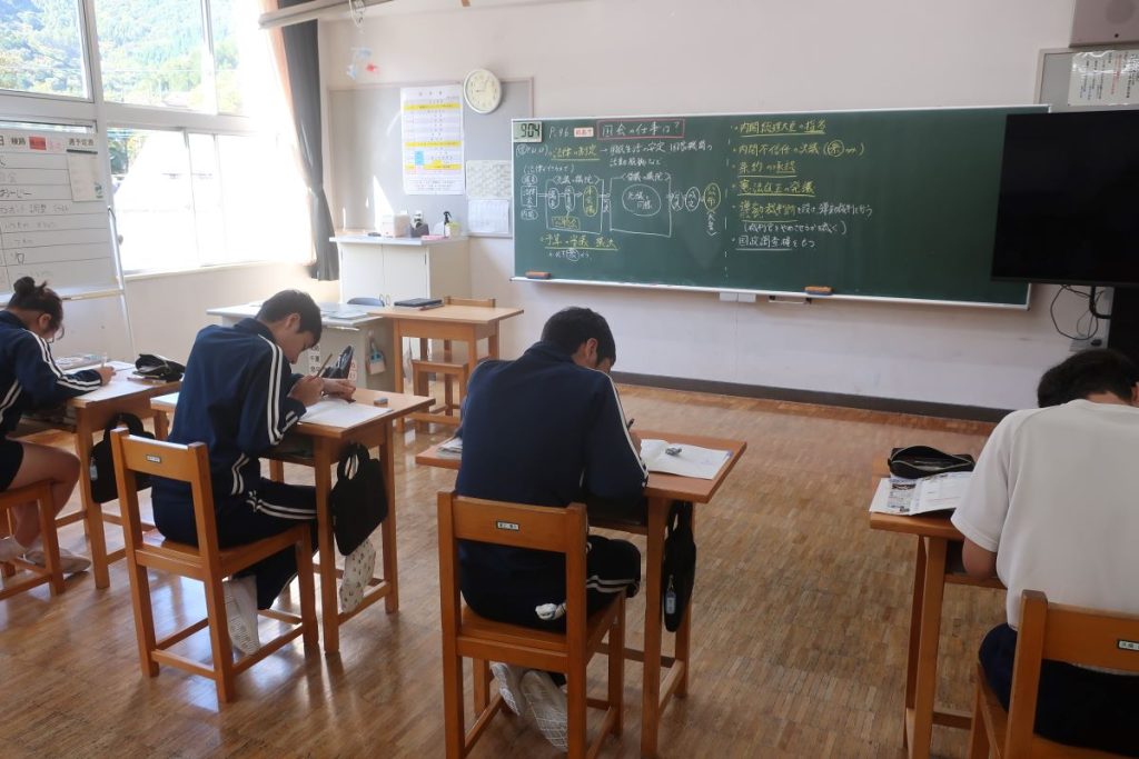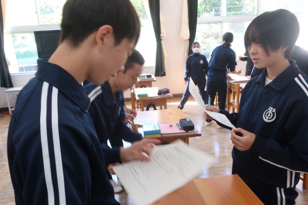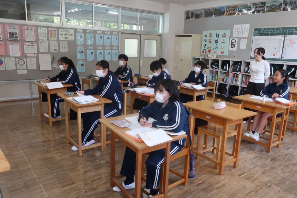 10/17 授業の様子(全校合唱練習、1年数学、2年英語、3年社会)