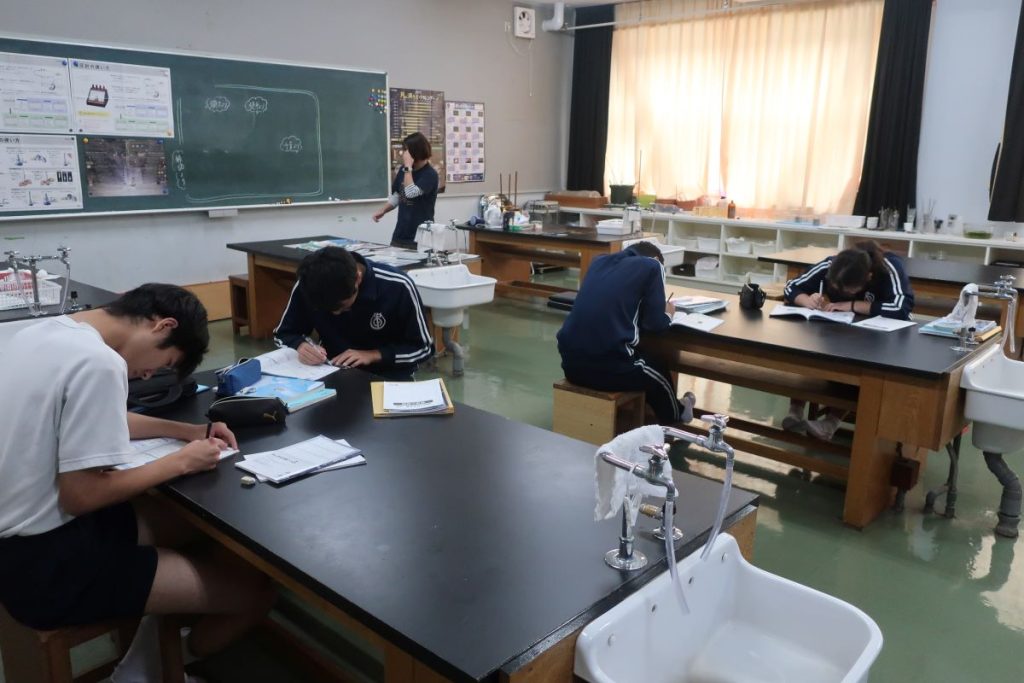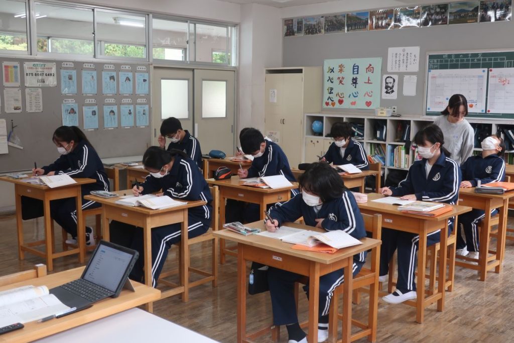 3年生の理科は、明日の単元テストに向けてワークで復習をしました。期末テスト期間を設けずに、単元テストを各教科で行っている本校。このように、教科ごとに一番いいタイミングで復習時間を確保できることも学習時候の定着に繋がっていると思います。明日のテスト、頑張ってほしいです。
