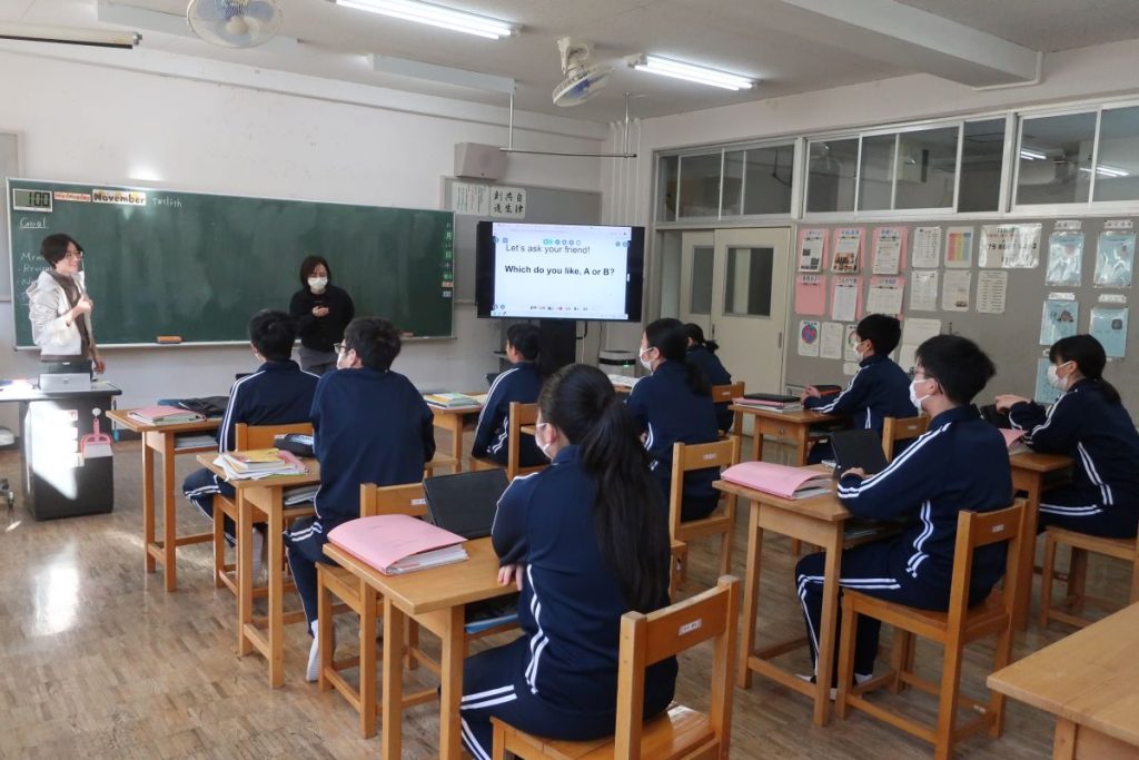 11/12 授業の様子(1年英語、2年道徳、3年総合)