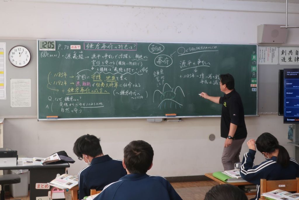 1年の社会は、鎌倉幕府についての学習です。小学生の時に修学旅行で行った鎌倉のことも思い出しながら、中学生らしい学びをしていました。 2年生の家庭は、「飲酒の害と健康」についての学習です。お酒が与える体への影響。興味深そうでした。 3年生の数学は、前回の実力テストの復習。かなり難しい問題が多かった前回のテスト。真剣に説明を聞く姿が印象的でした。 アクセス数: 14
