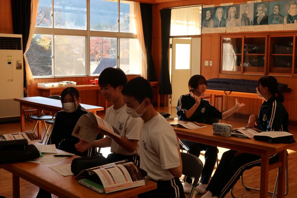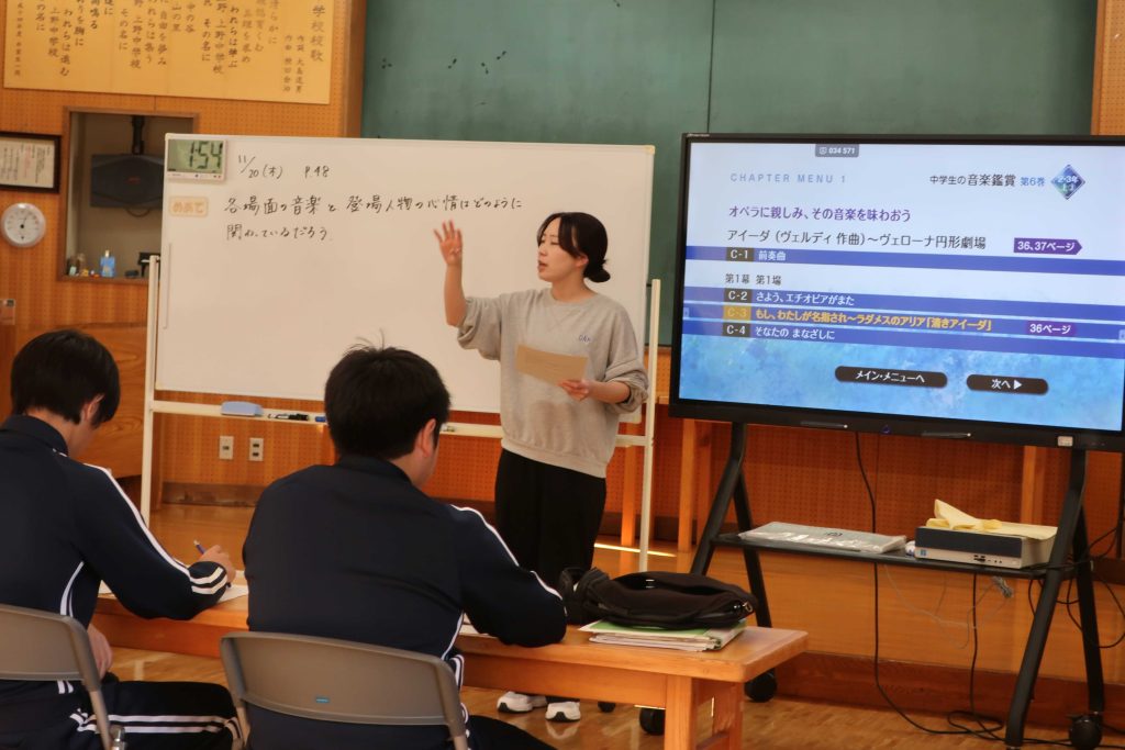 1年生の国語では、「文の組み立て」についての学習でした。ワークやプリントを活用して理解を深めました。 2年生の音楽は、オペラ「アイーダ」を鑑賞しました。音楽の特徴や表現されている心情等について、感じたことを友達と伝え合いました。 3年生の英語は、仮定法の学習です。「もしどこでもドアがあったら、~へ行きたい」という英文を考え隣どうしで伝え合い、「If」の使い方について学びました。 アクセス数: 9