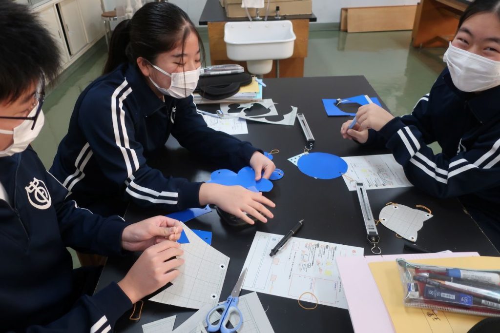 1年生の理科では、力の釣り合いについて実験をしてデータをとっていました。活動が入ると生徒の目の輝きが違います。それを頭を使って考察するところもとても大事にしている1年生です。