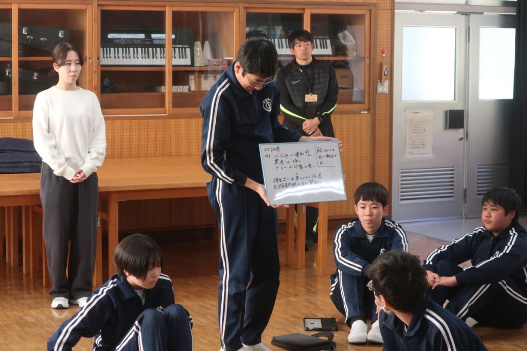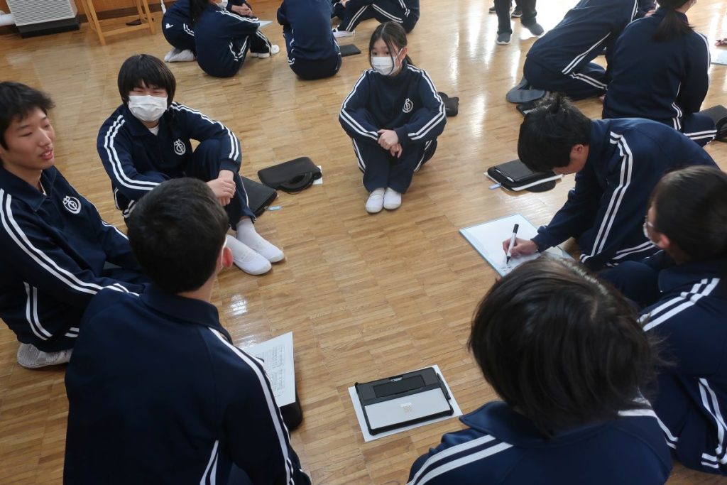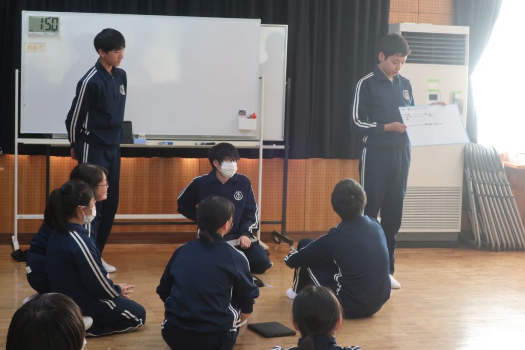 毎年、きまりの見直しを生徒主体で行っています。今年は事前アンケートで「マスクの色」が中心議題。その他にもいくつかリクエストがあり、生徒会本部で改定案を作成してくれました。中心議題はグループに分かれて話し合って、出された意見を基に再度検討して来年度のきまりに仕上げます。最終的には教員チェックが入りますが、自分たちの学校生活を自分たちでよりよくしていくという考え方が根付いているところがとても素敵だと思います。今年もいい見直しができました。