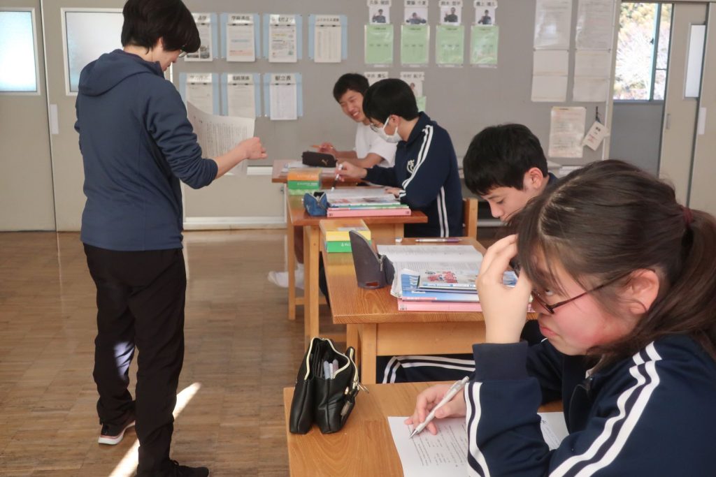 1年生の数学は、立体の投影図の勉強をしました。立面図、平面図、投影図と立体をどう捉えるのかを考える上でとても大事な勉強です。結構難しい内容ですよね。 2年生の国語では、助動詞の勉強をしました。動詞の終止形と助動詞の見分けが難しいケースがあります。話し合いを通してその区別がしっかり付くように考えていました。 3年生の英語は、入試演習です。先生と一緒に考えながら解き進めていました。一週間後には入試も終了です。 アクセス数: 27