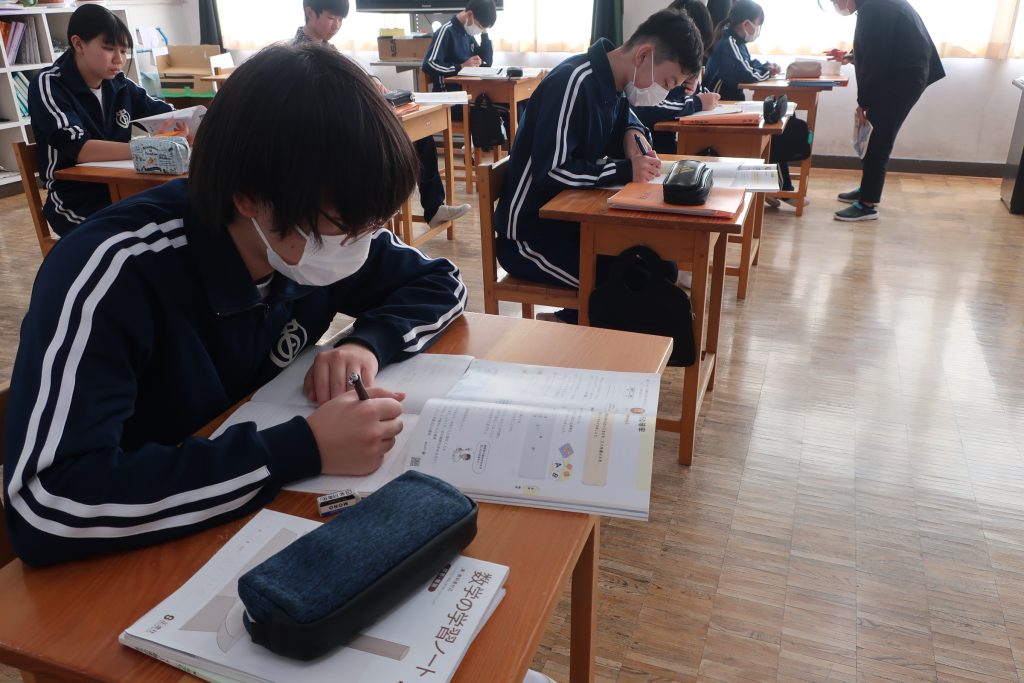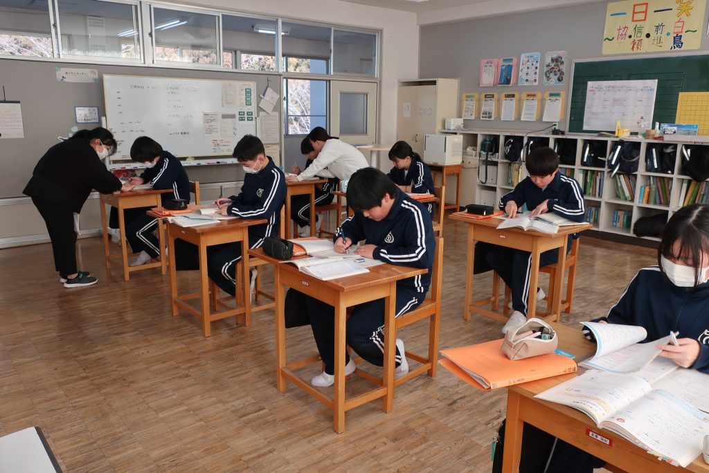 1年生の美術は、人物画鑑賞の学習でした。レオナルド・ダ・ヴィンチが16世紀初頭に制作した油彩画「モナ・リザ」について、みて感じたことや調べて分かったことなどをまとめました。 2年生の数学は、「いろいろな確率」の学習です。決められた班長、副班長の組み合わせになる確率を、樹形図を使って考えました。 3年生は、公立高校受検です。3・4校時、進路の決定している生徒は、奉仕活動を行いました。 アクセス数: 27