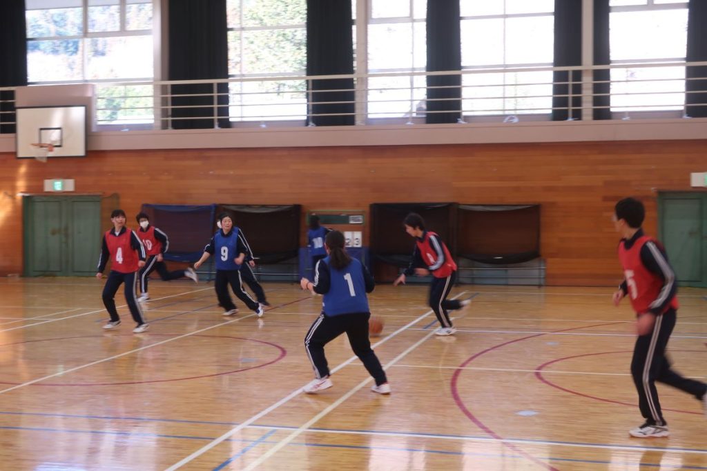 全校体育では、先週からバスケットボールに取り組んでいます。男子と女子でゴールの点が違ったり、リングに当たるだけでも点が入ったり。様々な工夫をしながら一人一人が前向きにバスケに親しみ、運動を楽しんでいます。