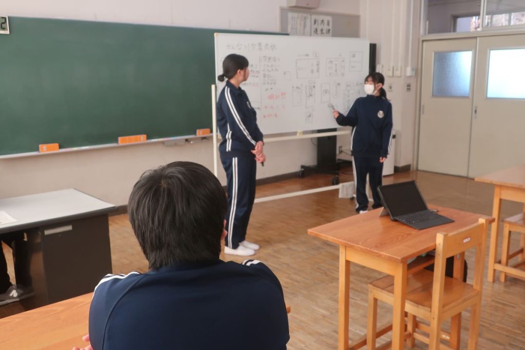 2年生の学活では、「かんな川文集」の表紙絵について話し合いが行われていました。学校の中心としてどんどん活躍の幅が広がっている2年生。どんな表紙ができあがるか楽しみです。