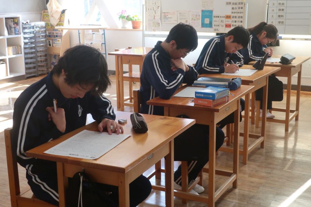 3年生の国語は、演習問題に取り組んでいました。2月19日、20日には公立高校の入試です。ラストスパート!リラックスしながらも真剣に取り組んでいる姿に成長の大きさを感じています。