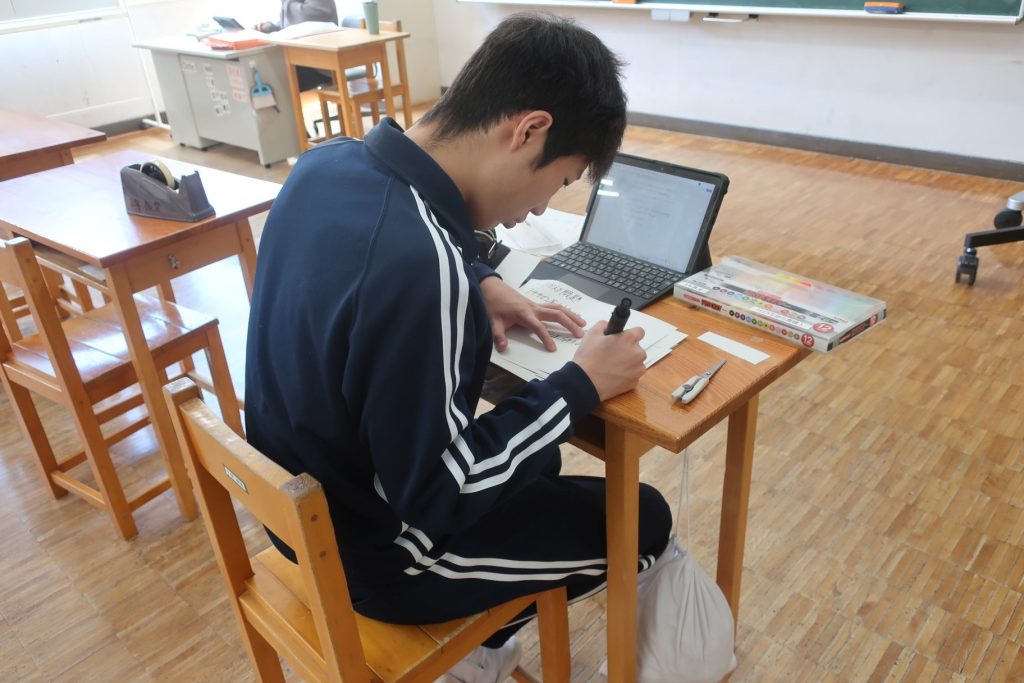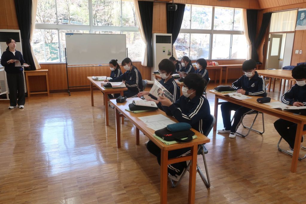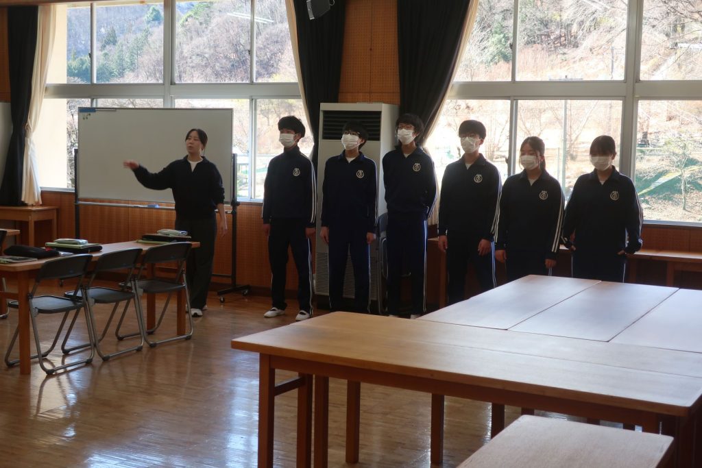 1年生の音楽では、卒業式の歌練習をした後、日本の民謡の学習を始めています。今日は群馬県の民謡を2曲取り上げました。 2年生の国語では、万場高校の先生の指導の下、作文を書きました。1年間お世話になったことで生徒の作文力は大きく向上したと思います。 3年生の数学では、レポートを書いていました。今日は公立高校の合格発表ということで究極の少人数でしたが、頑張っていました。 アクセス数: 10