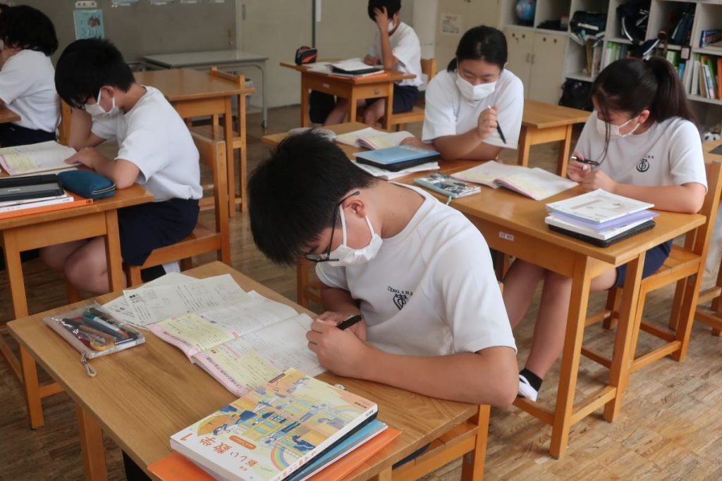 3年生は、次の実力テストに向けて必要な勉強を考えて各自が取り組みました。主体的に学ぶ上中生の目指す姿。日に日に学習への集中力が研ぎ澄まされていくようです。